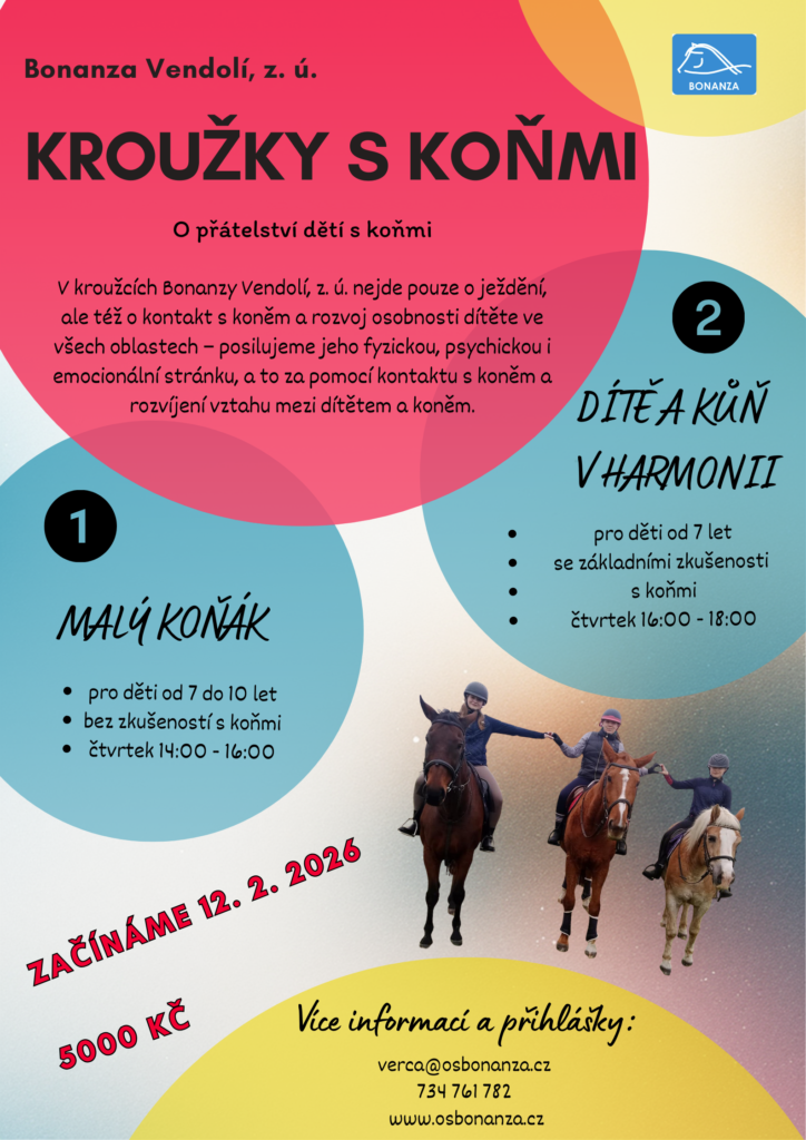 Máme radost, že od 12. února 2026 budeme otevírat další kroužky s koňmi: