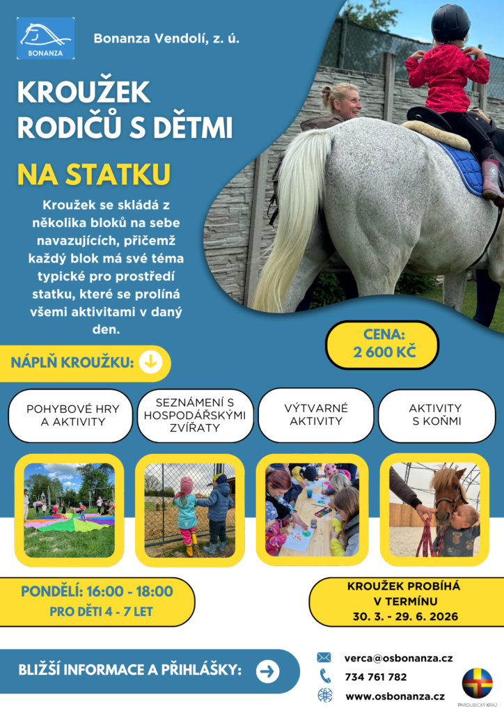 Pro rodiče s dětmi otevíráme kroužek Na statku, který bude v roce 2026 pouze jeden a bude prodloužen. Začínáme 30. 3. 2026.